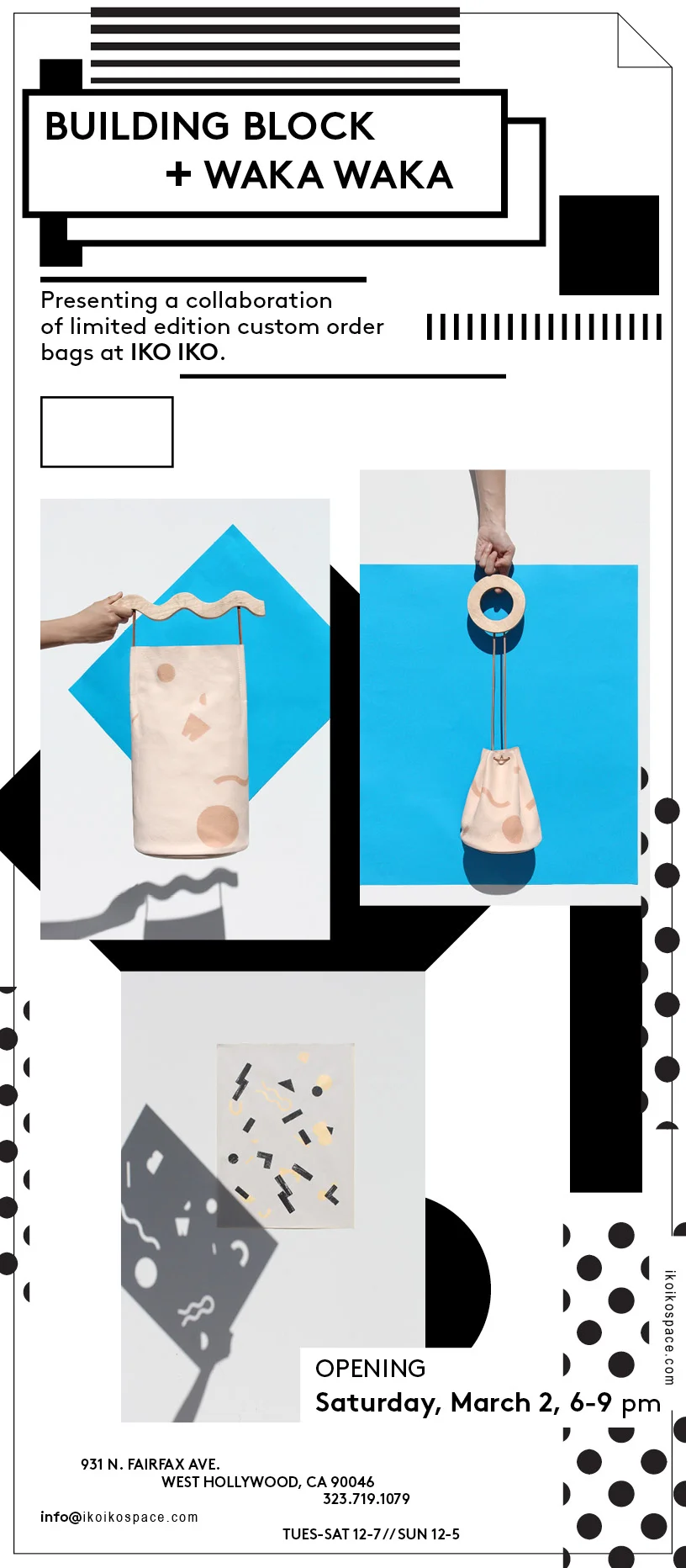 Building Block + WAKA WAKA limited edition series of custom order bags and more.