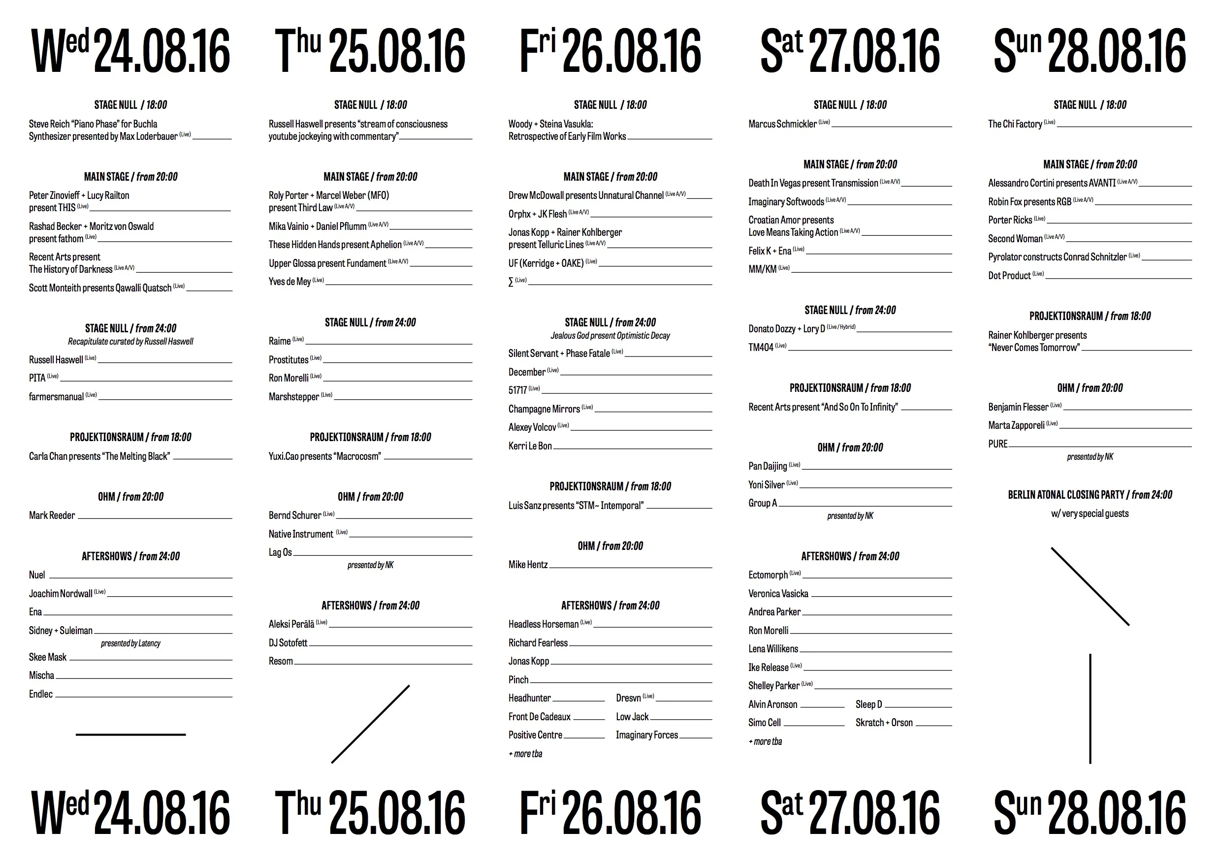 Also just released, Berlin Atonal has now revealed the full festival schedule and features 5 days of programming unlike any other event in the world. Expect one-off performances from the likes of Drew McDowall, Orphx + JK Flesh, These Hidden Hands, Raime, Croation Amor (presenting Love Means Taking Action), Donoto Dozzy + Lory D and UF (Kerridge + Oake), just to name a few. You can find the schedule below and look for more features coming soon on The Brvtalist.