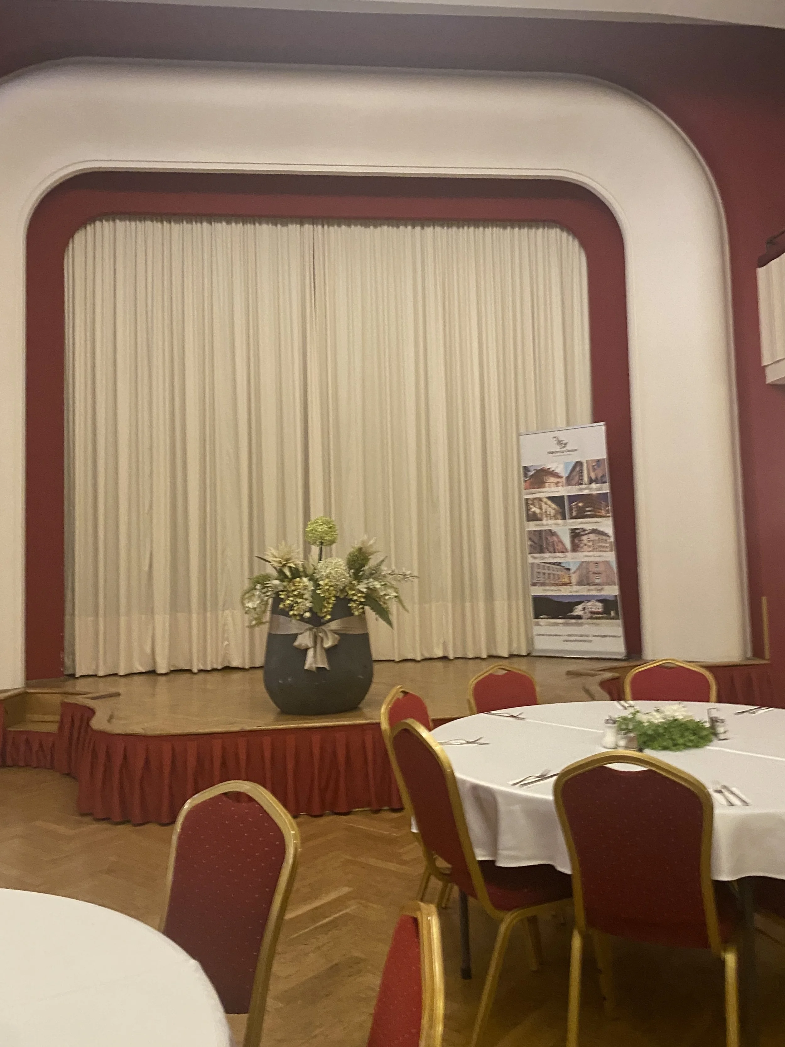 As usual, I wake up well before my alarm goes off and I'm in time to make the hotel breakfast at the Belvedere. The food itself is not that special but the breakfast hall is some sort of post Soviet dining experience that I look forward to for some reason. The space where breakfast is served is inside of a grand ballroom. It feels like it should be used for an award show, gala or party conference and the crimson red curtains on the stage and wrap around upper level make for an odd place to have a buffet but I've come to enjoy having a coffee there.