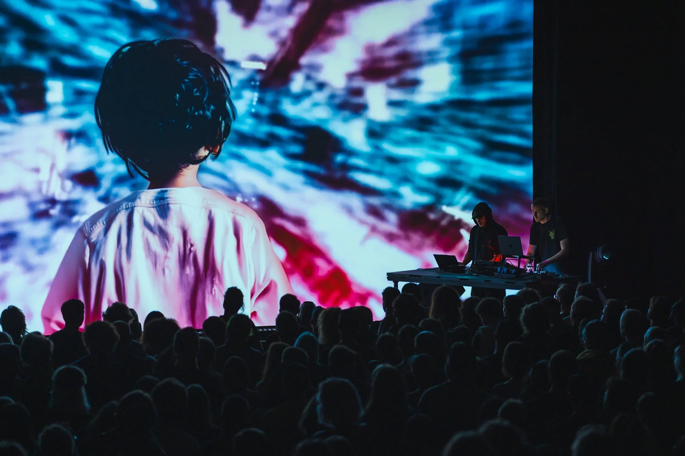 Back on the main stage, next was Pinch & Lorem's "A Red Rabbit". This work commissioned by Lunchmeat brought the tough-as-nails industrial-tinged techno, Bristolian musician and DJ Pinch back to the National Gallery with a mind bending new a/v with Lorem. As the artist states this was, “A guided journey through oneiric textures and spacious bass sonics. Who or what is the Red Rabbit? Will it guide you safely in strange times, or lure you deeper into chaos and confusion? Is awake it now when was tha”. This was probably one of most intense pieces I saw at the festival and between the percussion and high energy visuals many even had to take a moment to process it all.