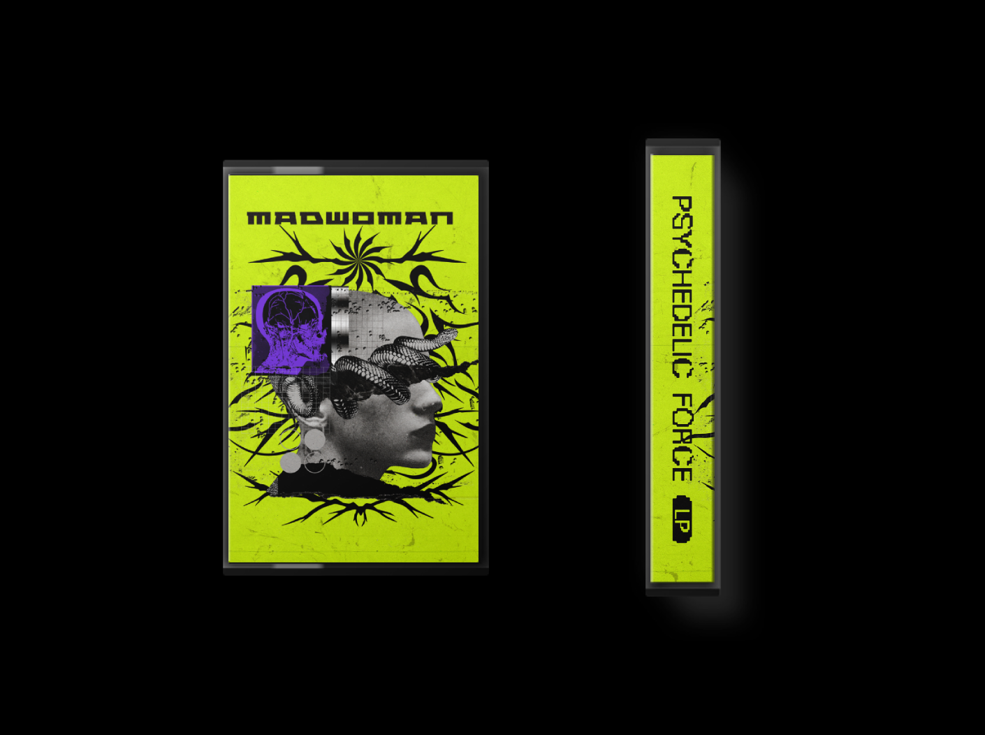 We are proud to announce the next release on Brvtalist Sound Recordings. The second entry on the label comes from Berlin-based producer/DJ madwoman. After releasing material on labels like Ismus, Khazad and Raven Sigh, she now lands on BSR for her debut LP, Psychedelic Force - a mental trip through industrial, hard techno and beyond. The album Includes eight tracks with two massive remixes from Aahan and Alessandro Nero. Out September 11th on limited cassette format with A4 poster with artwork by Georgian visual artist Stugbear.