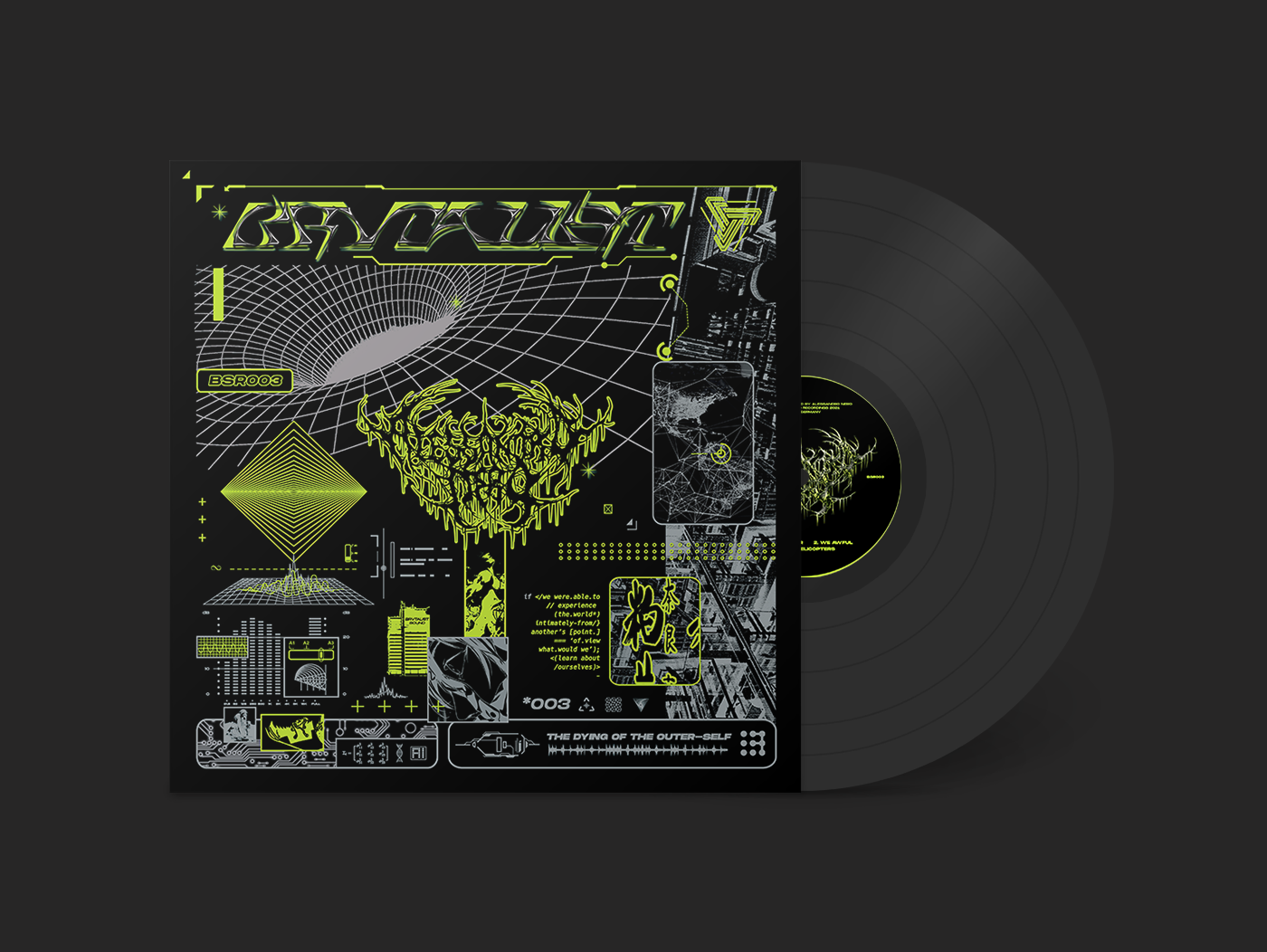 The day has finally come when our first vinyl is released! The Dying Of The Outer-Self is 4 original tracks of crushing industrial techno with two massive remixes from L Ʌ V Σ N and hypnoskull.
